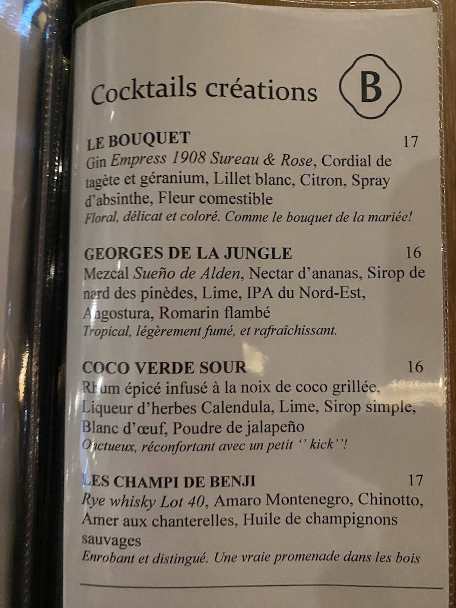 Introducing Les Botanistes, a culinary oasis nestled in Sainte-Foy, Quebec. This fine dining establishment captivates with its fresh, seasonal menu that showcases local ingredients, ensuring each dish bursts with flavor. At the heart of their offerings, you'll find exquisite entrees like the delectable Foie Gras with a unique twist of pommette and gel d’épinette, setting a luxurious tone for your meal. The main courses highlight the elegance of root vegetables paired with expertly prepared sturgeon, while the mushroom agnolotti offers a comforting surprise for pasta lovers.